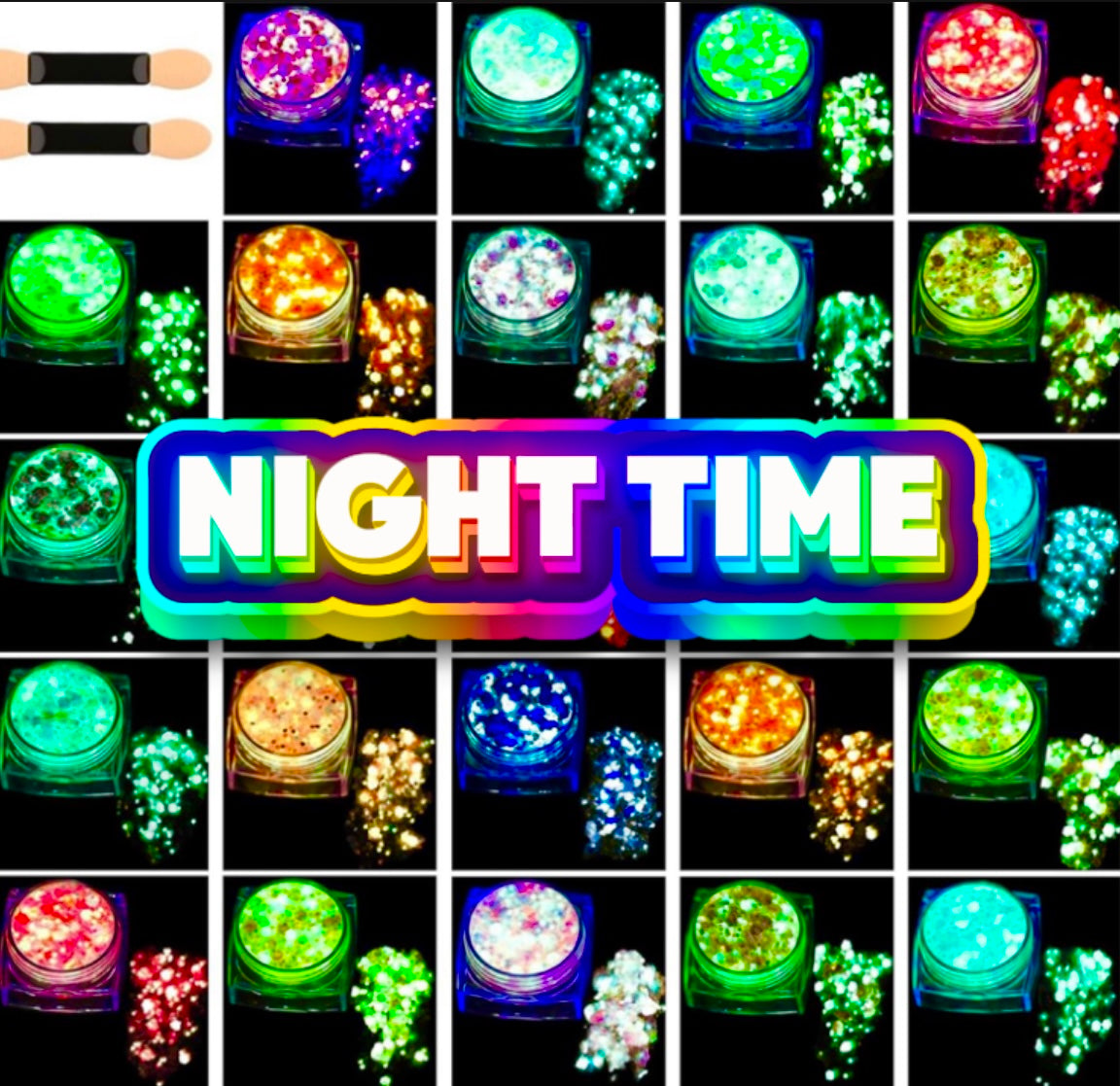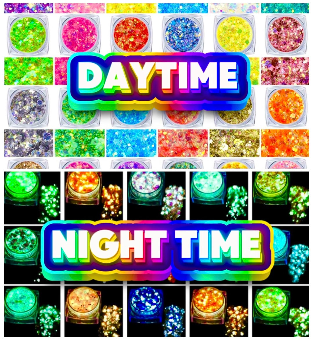 Light up the night with this Glow in the Dark Glitter! A bold, electrifying glitter gel designed for both face and body! Each shade is packed with dazzling sparkle by day and transforms into a glowing statement by night. Simply charge under bright light, and watch your glitter glow for up to 30 minutes of spooky radiance. Perfect for festivals, parties, performances, Halloween festivals or whenever you want to stand out in the dark.